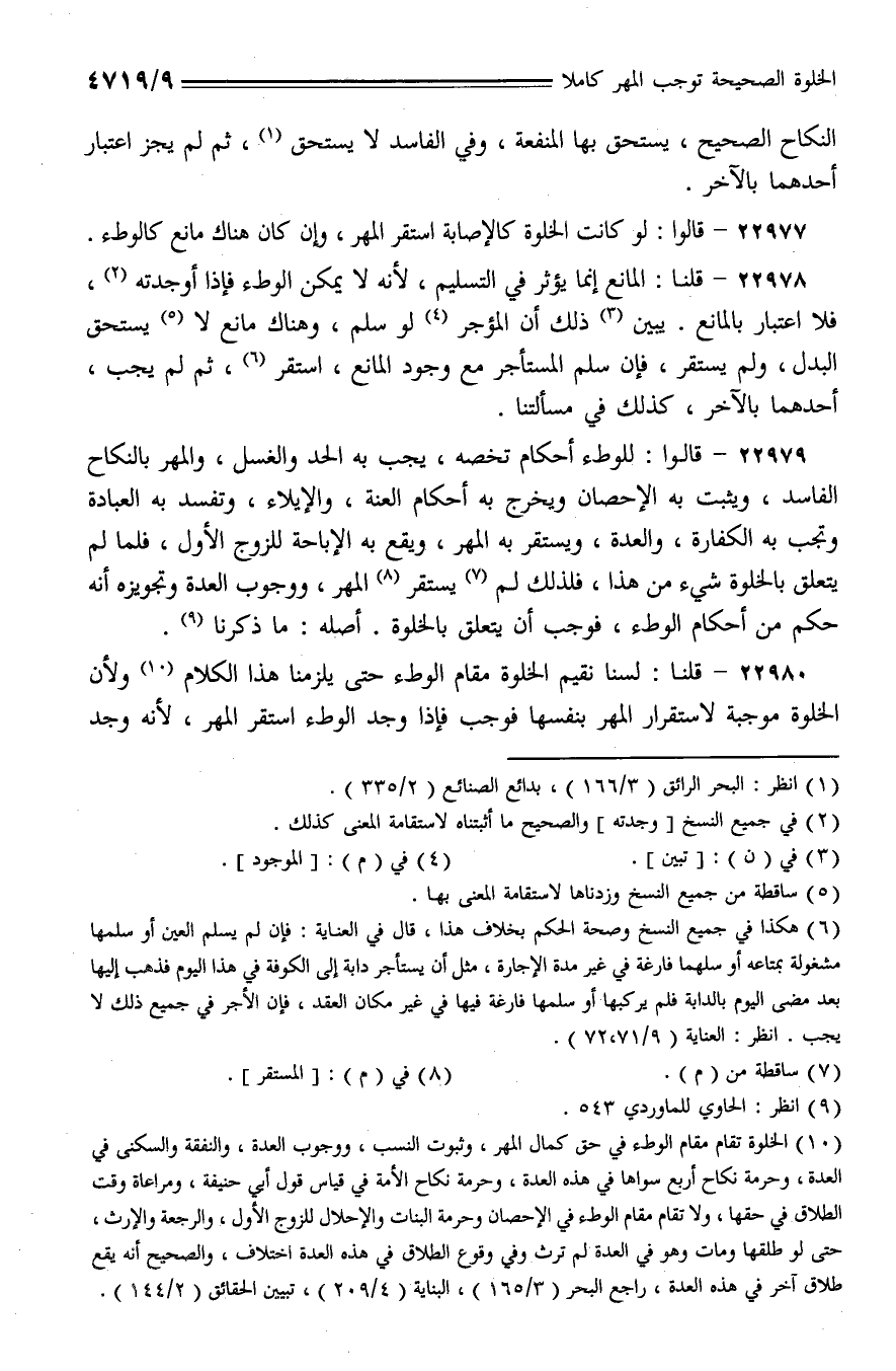 22977 - قالوا: لو كانت الخلوة كالإصابة استقر المهر، وإن كان هناك مانع كالوطء.