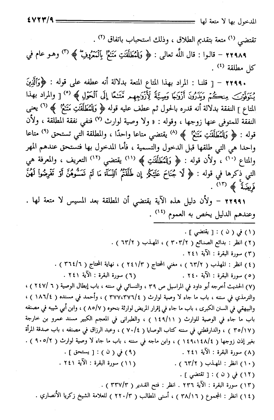 22989 - قالوا: قال الله تعالى:} وللمطلقات متاع بالمعروف {وهو عام في كل مطلقة.