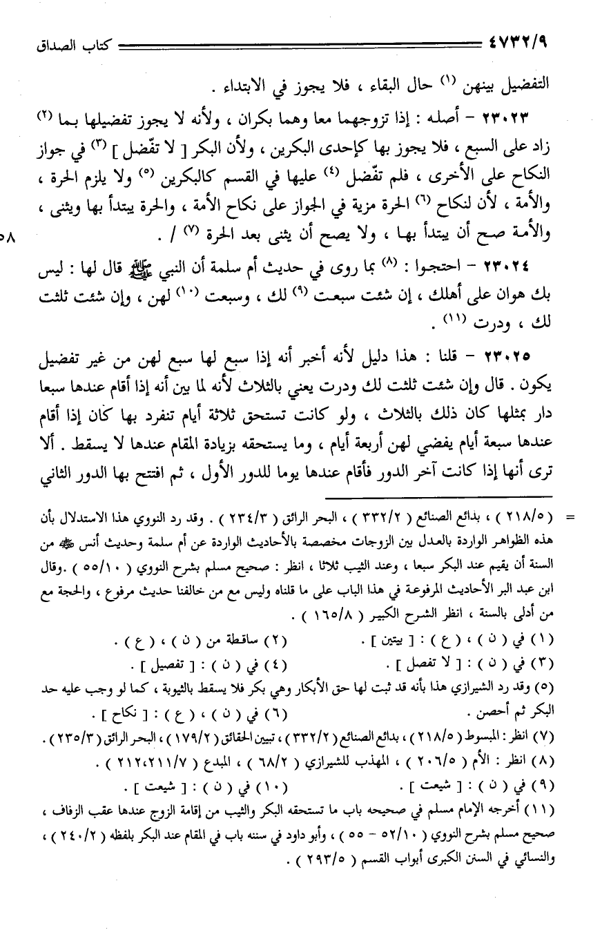 23024 - احتجوا: بما روى في حديث أم سلمة أن النبي - صلى الله عليه وسلم - قال لها: ليس بك هوان على أهلك، إن شئت سبعت لك، وسبعت لهن، وإن شئت ثلثت لك، ودرت.