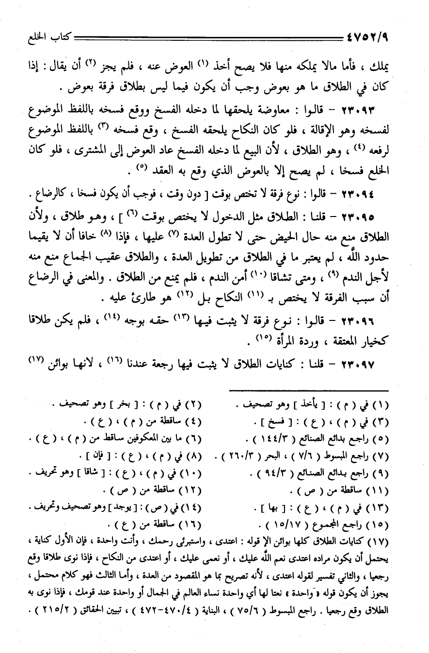 23096 - قالوا: نوع فرقة لا يثبت فيها حقه بوجه، فلم يكن طلاقًا كخيار المعتقة، وردة المرأة.