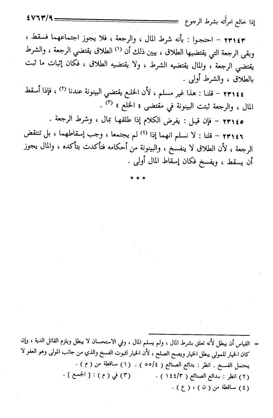 23145 - فإن قيل: يفرض الكلام إذا طلقها بمال، وشرط الرجعة.