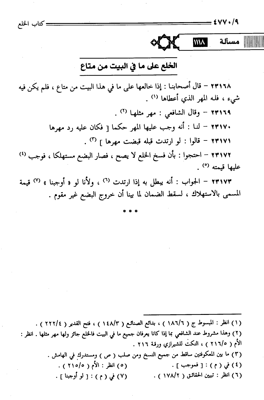 23168 - قال أصحابنا: إذا خالعها على ما في هذا البيت من متاع، فلم يكن فيه شيء، فله المهر الذي أعطاها.