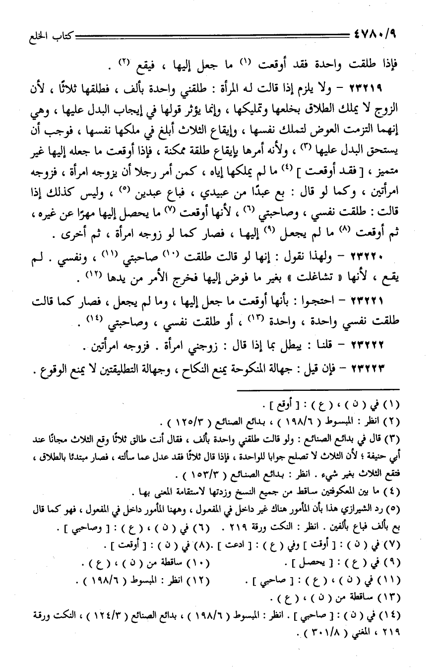 23221 - احتجوا: بأنها أوقعت ما جعل إليها، وما لم يجعل، فصار كما قالت طلقت نفسي واحدة، واحدة، أو طلقت نفسي، وصاحبتي.