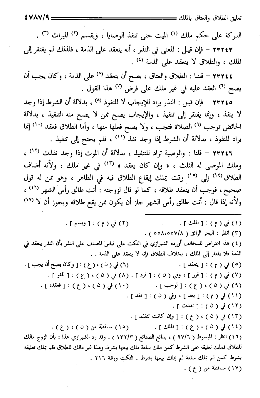 23244 - قلنا: الطلاق والعتاق، يصح أن ينعقد على الذمة، وكان يجب أن يصح العقد عليه في غير ملك على فرض هذا القول.