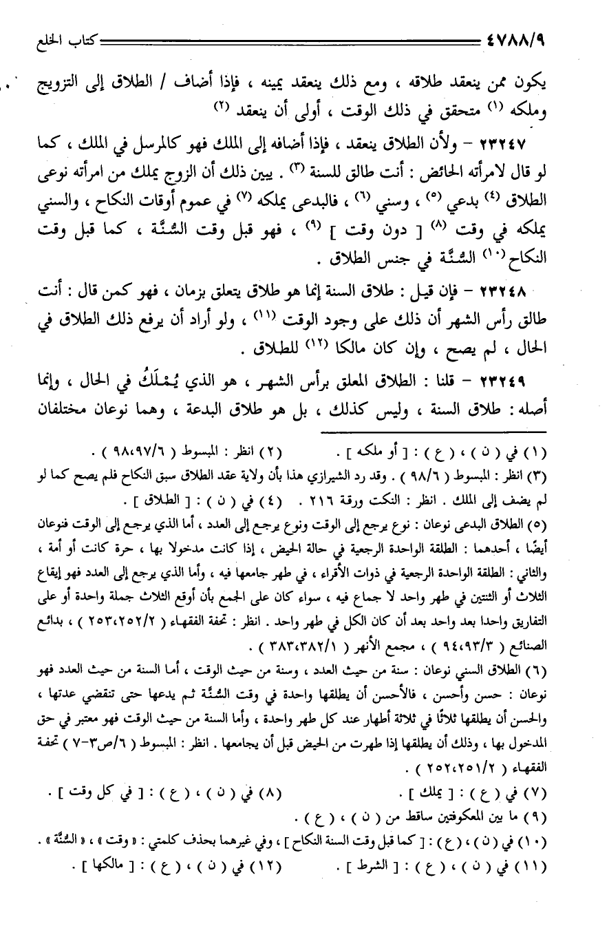 23247 - ولأن الطلاق ينعقد، فإذا أضافه إلى الملك فهو كالمرسل في الملك، كما لو قال لامرأته الحائض: أنت طالق للسنة. يبين ذلك أن الزوج يملك من امرأته نوعي الطلاق بدعي، وسني، فالبدعي يملكه في عموم أوقات النكاح، والسني يملكه في وقت [دون وقت]، فهو قبل وقت السنة، كما قيل وقت النكاح السنة في جنس الطلاق.