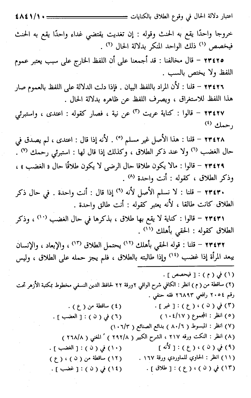 23428 - قلنا: هذا الأصل غير مسلم. لأنه إذا قال: اعتدي، لم يصدق في حال الغضب ولا عند ذكر الطلاق، وكذلك إذا قال لها: استبرئي رحمك.