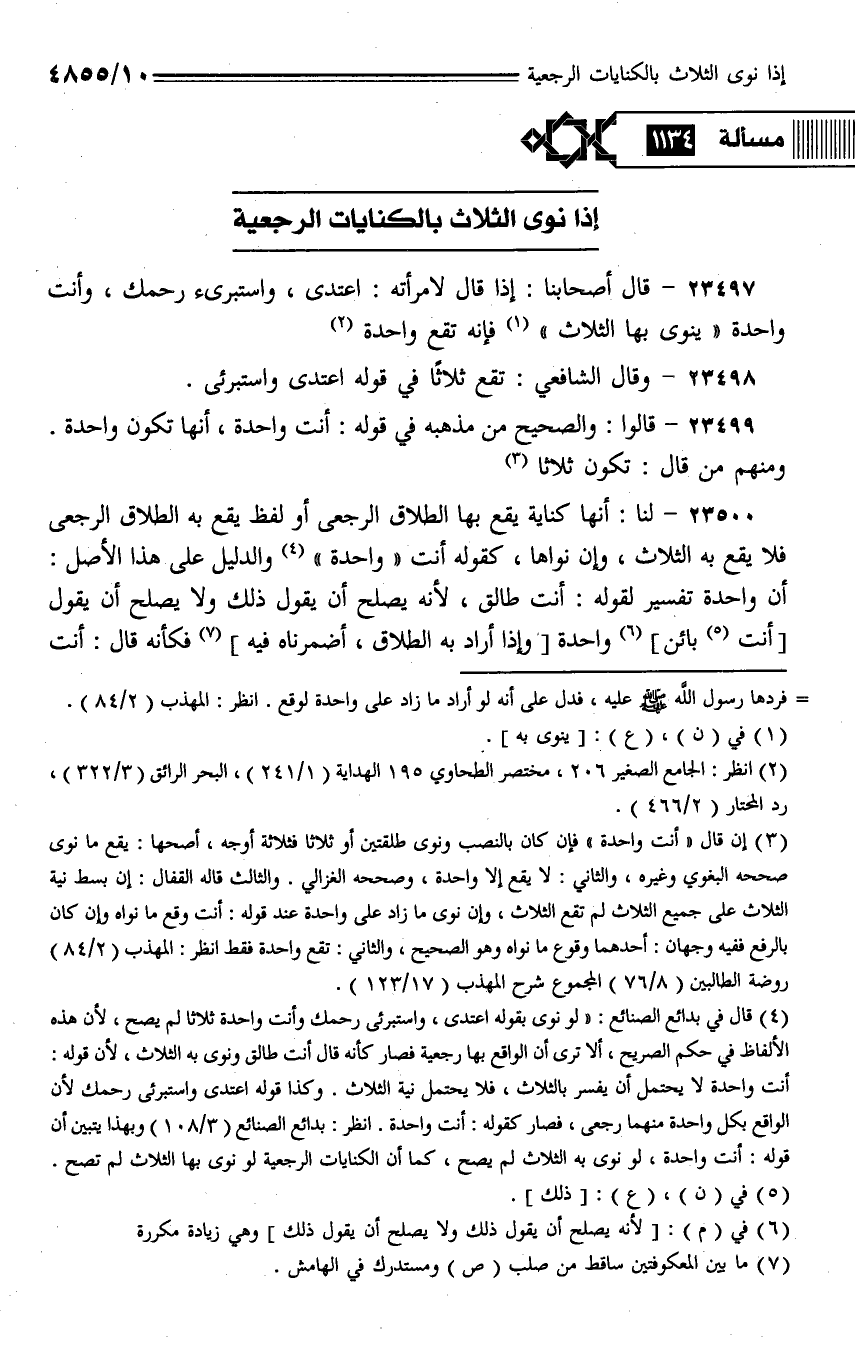 23498 - وقال الشافعي: تقع ثلاثًا في قوله اعتدي واستبرئي.