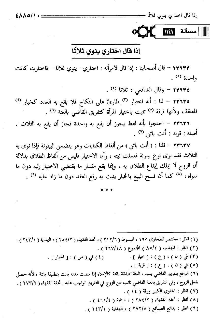 23636 - احتجوا بأنه لفظ يجوز أن يقع به واحدة فجاز أن يقع به الثلاث. أصله: قوله: أنت بائن.