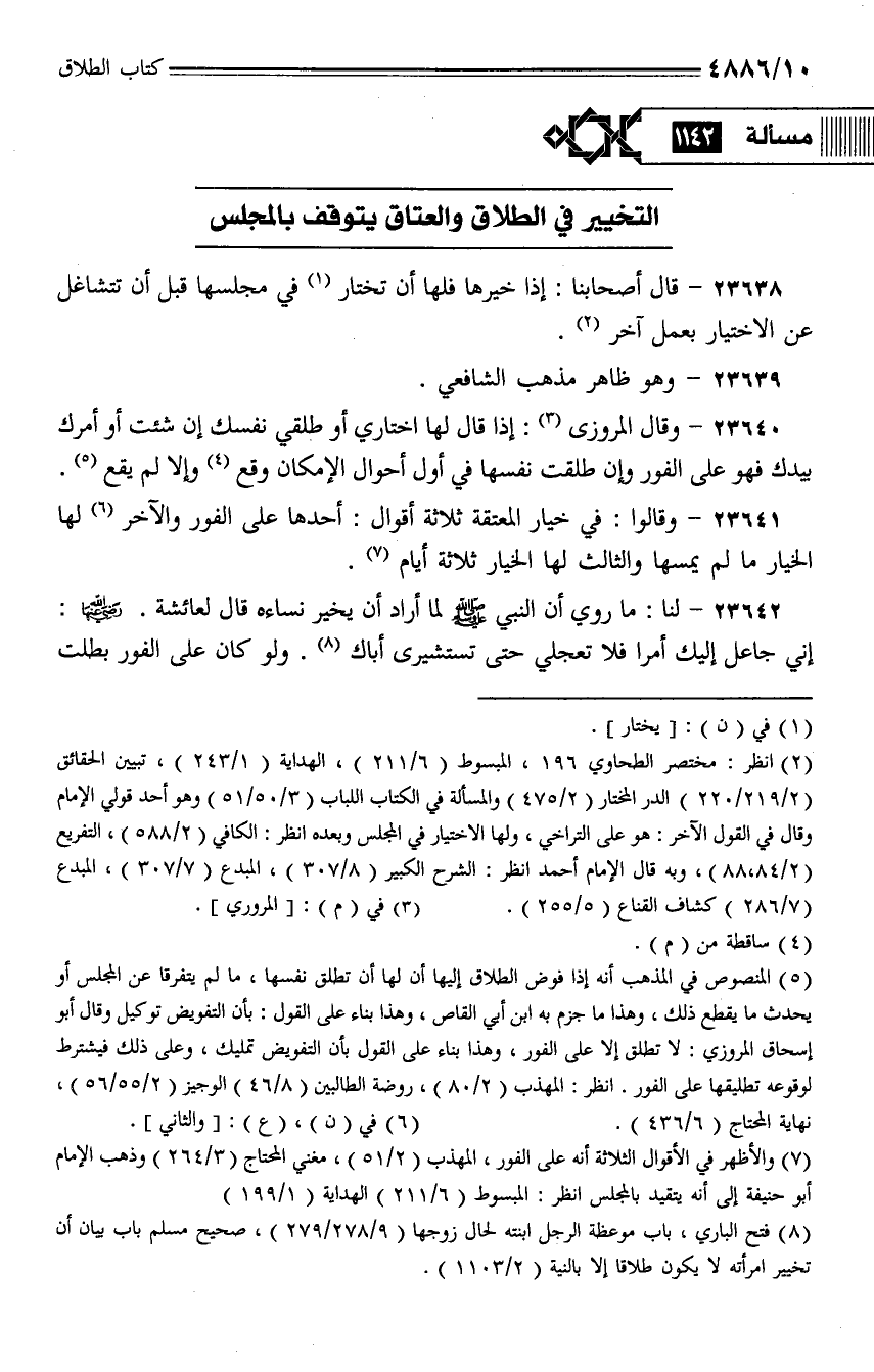 التخيير في الطلاق والعتاق يتوقف بالمجلس