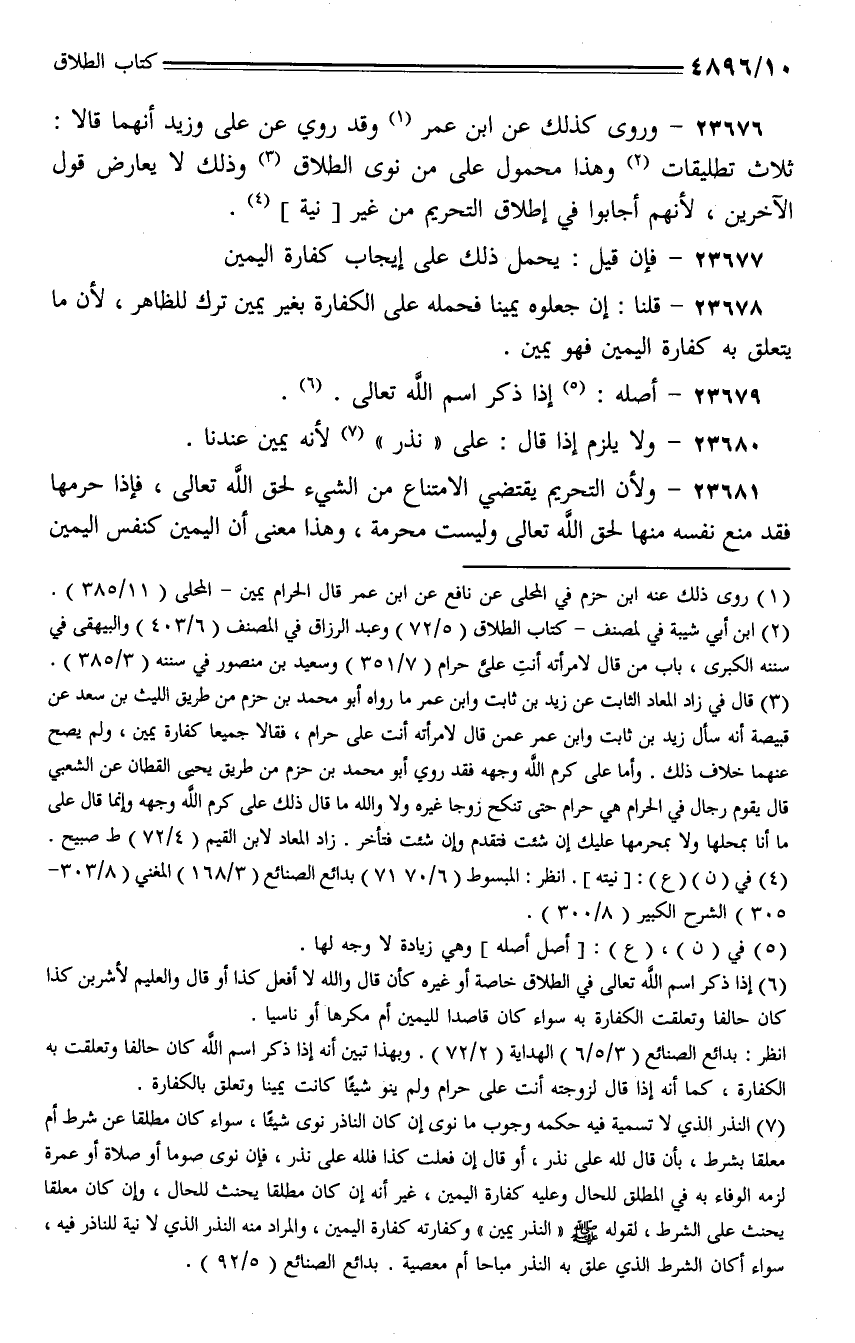 23676 - وروى كذلك عن ابن عمر وقد روي عن علي وزيد أنهما قالا: ثلاث تطليقات وهذا محمول على من نوى الطلاق وذلك لا يعارض قول الآخرين، لأنهم أجابوا في إطلاق التحريم من غير [نية].
