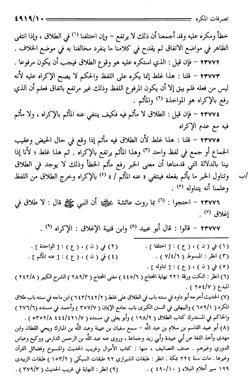 23777 - قالوا: قال أبو عبيد وابن قتيبة الإغلاق: الإكراه.
