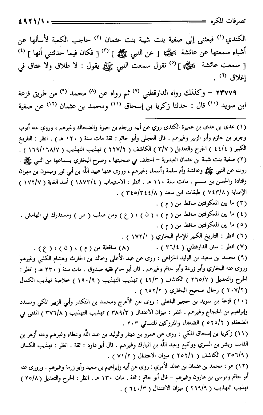 23779 - وكذلك رواه الدارقطني ثم رواه عن محمد من طريق قزعة ابن سويد قال: حدثنا زكريا بن إسحاق ومحمد بن عثمان عن صفية