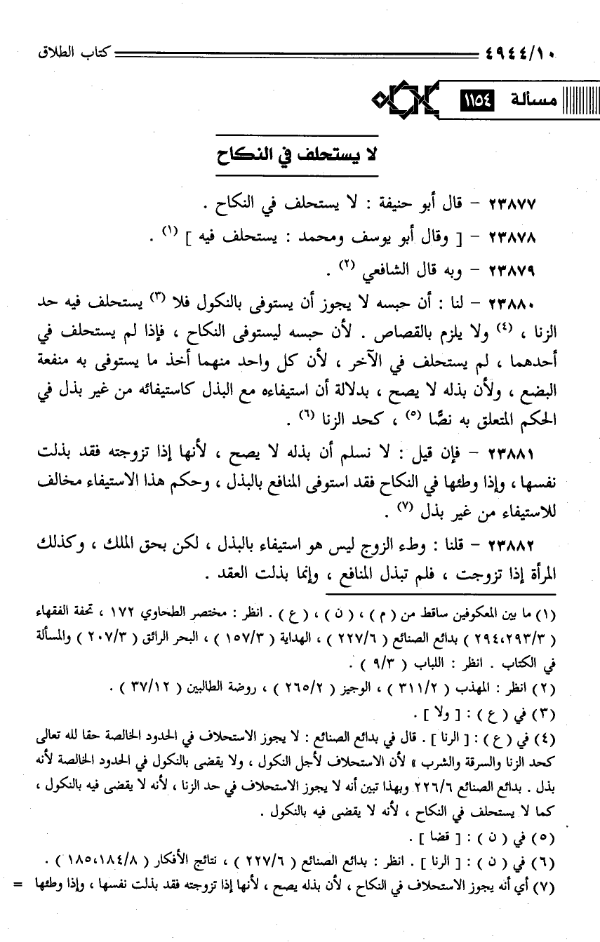 23877 - قال أبو حنيفة: لا يستحلف في النكاح.