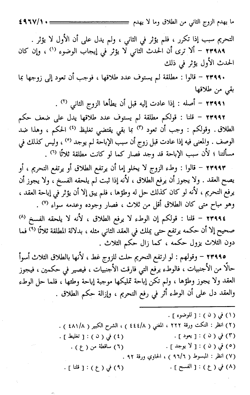 23990 - قالوا: مطلقة لم يستوف عدد طلاقها، فوجب أن تعود إلى زوجها بما بقي من طلاقها.