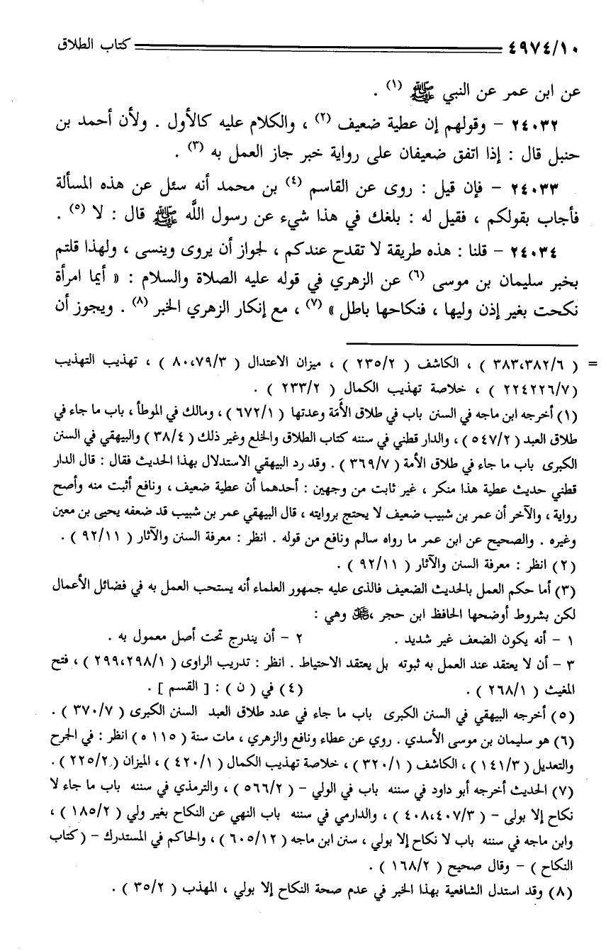 24032 - وقولهم إن عطية ضعيف، والكلام عليه كالأول. ولأن أحمد بن حنبل قال: إذا اتفق ضعيفان على رواية خبر جاز العمل به.