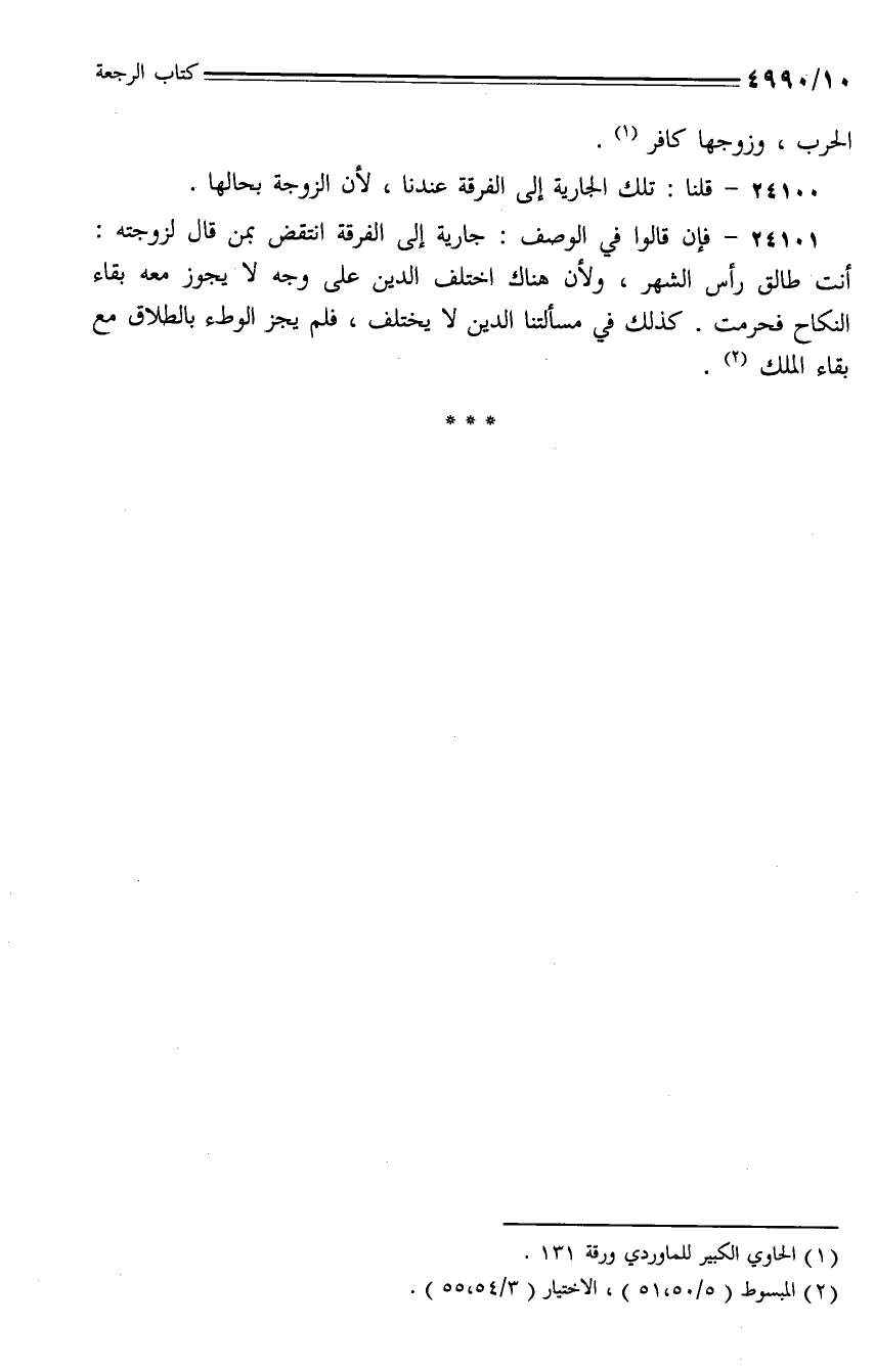 24101 - فإن قالوا في الوصف: جارية إلى الفرقة انتقض بمن قال لزوجته: أنت طالق رأس الشهر، ولأن هناك اختلف الدين على وجه لا يجوز معه بقاء النكاح فحرمت. كذلك في مسألتنا الدين لا يختلف، فلم يجز الوطء بالطلاق مع بقاء الملك.