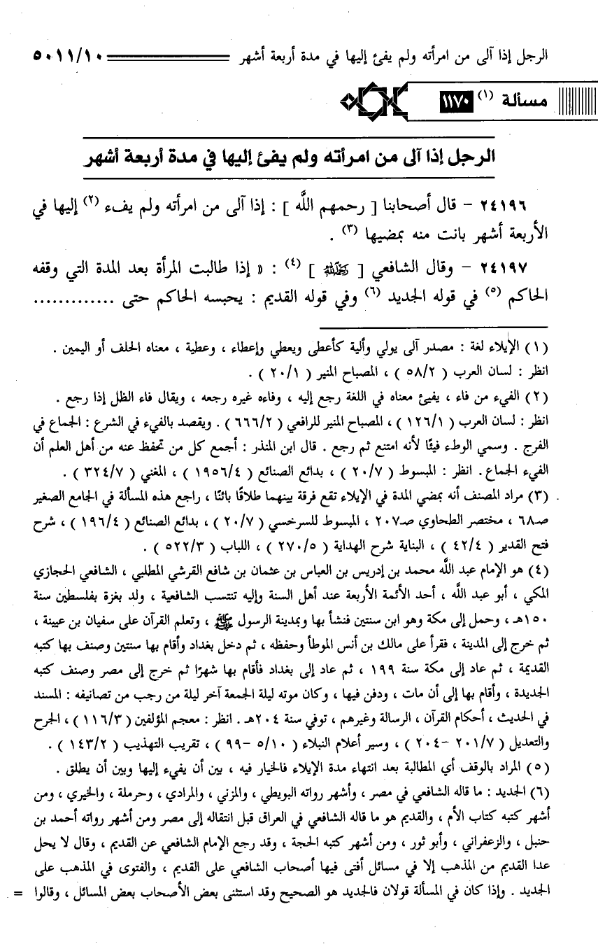 24197 - وقال الشافعي [رحمه الله]: (إذا طالبت المرأة بعد المدة التي وقفه الحاكم في قوله الجديد وفي قوله القديم: يحبسه الحاكم حتى