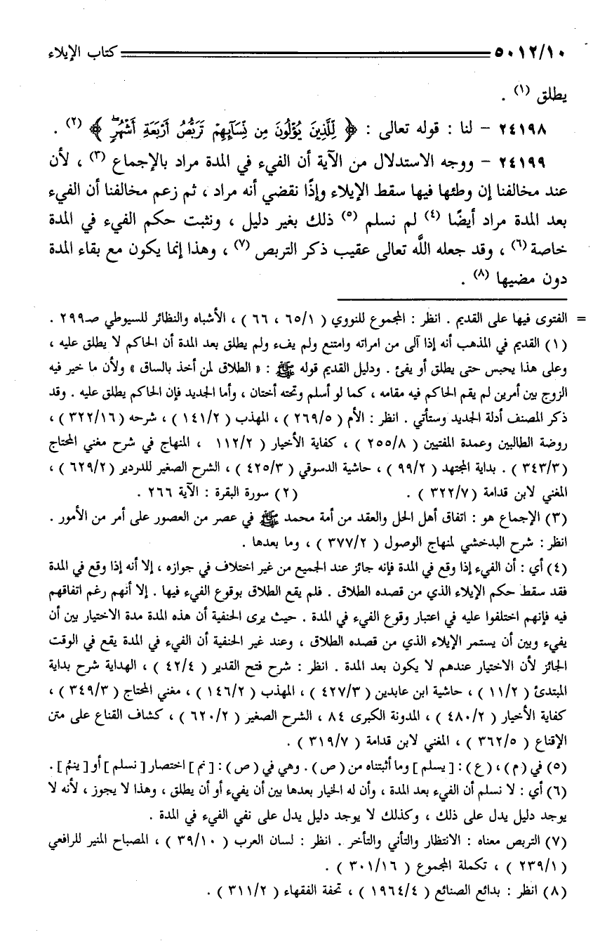 24199 - ووجه الاستدلال من الآية أن الفيء في المدة مراد بالإجماع، لأن عند مخالفنا إن وطئها فيها سقط الإيلاء وإذا انقضى أنه مراد، ثم زعم مخالفنا أن الفيء بعد المدة مراد أيضًا لم نسلم ذلك بغير دليل، ونثبت حكم الفيء في المدة خاصة، وقد جعله الله تعالى عقيب ذكر التربص، وهذا إنما يكون مع بقاء المدة دون مضيها.