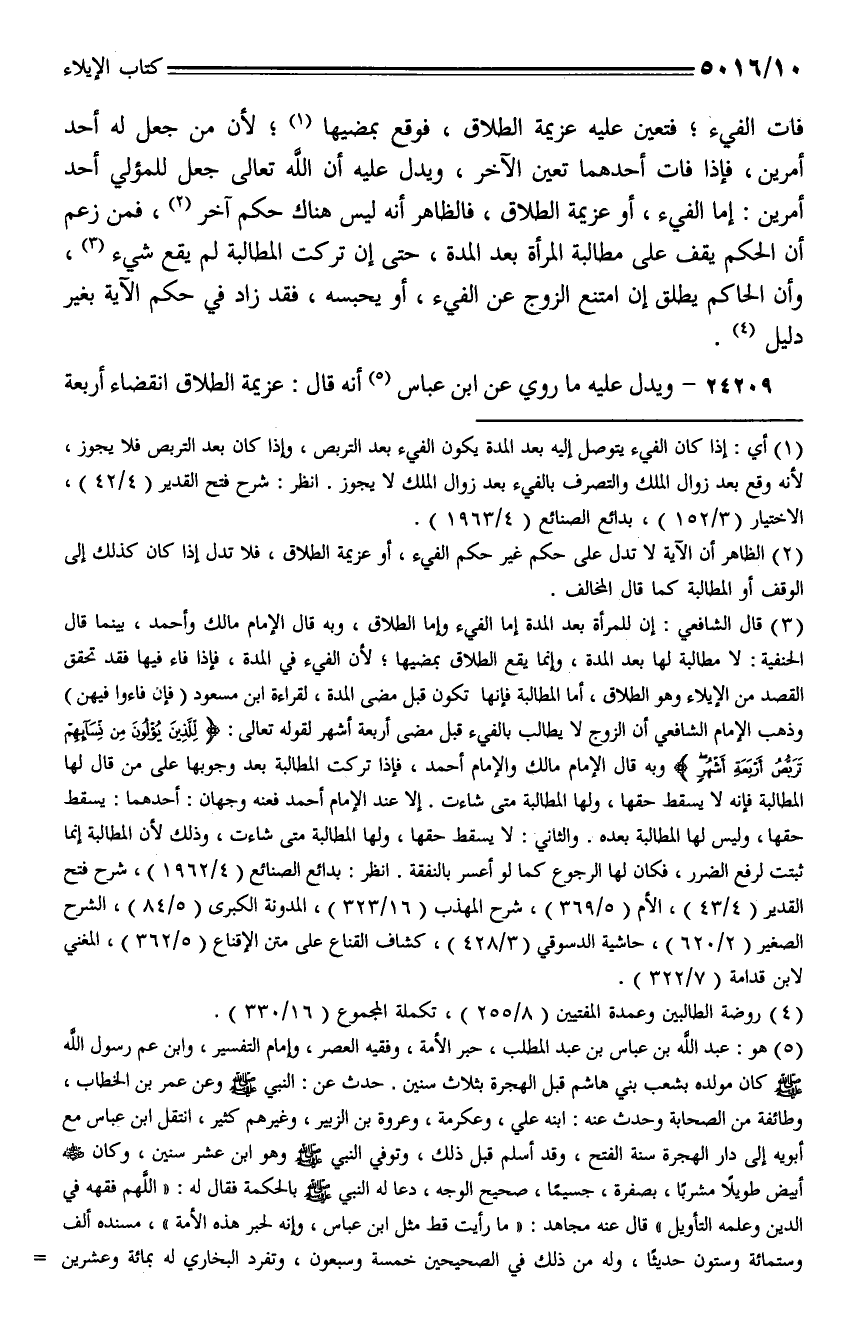 24209 - ويدل عليه ما روي عن ابن عباس أنه قال: عزيمة الطلاق انقضاء أربعة