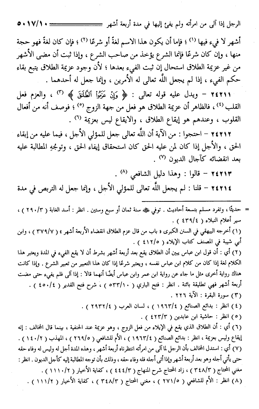 24212 - احتجوا: من الآية أن الله تعالى جعل للمؤلي الأجل، فيما عليه من إبقاء الحق، والأجل إذا كان لمن عليه الحق كان استحقاق إيفاء الحق، وتوجه المطالبة عليه بعد انقضائه كآجال الديون.