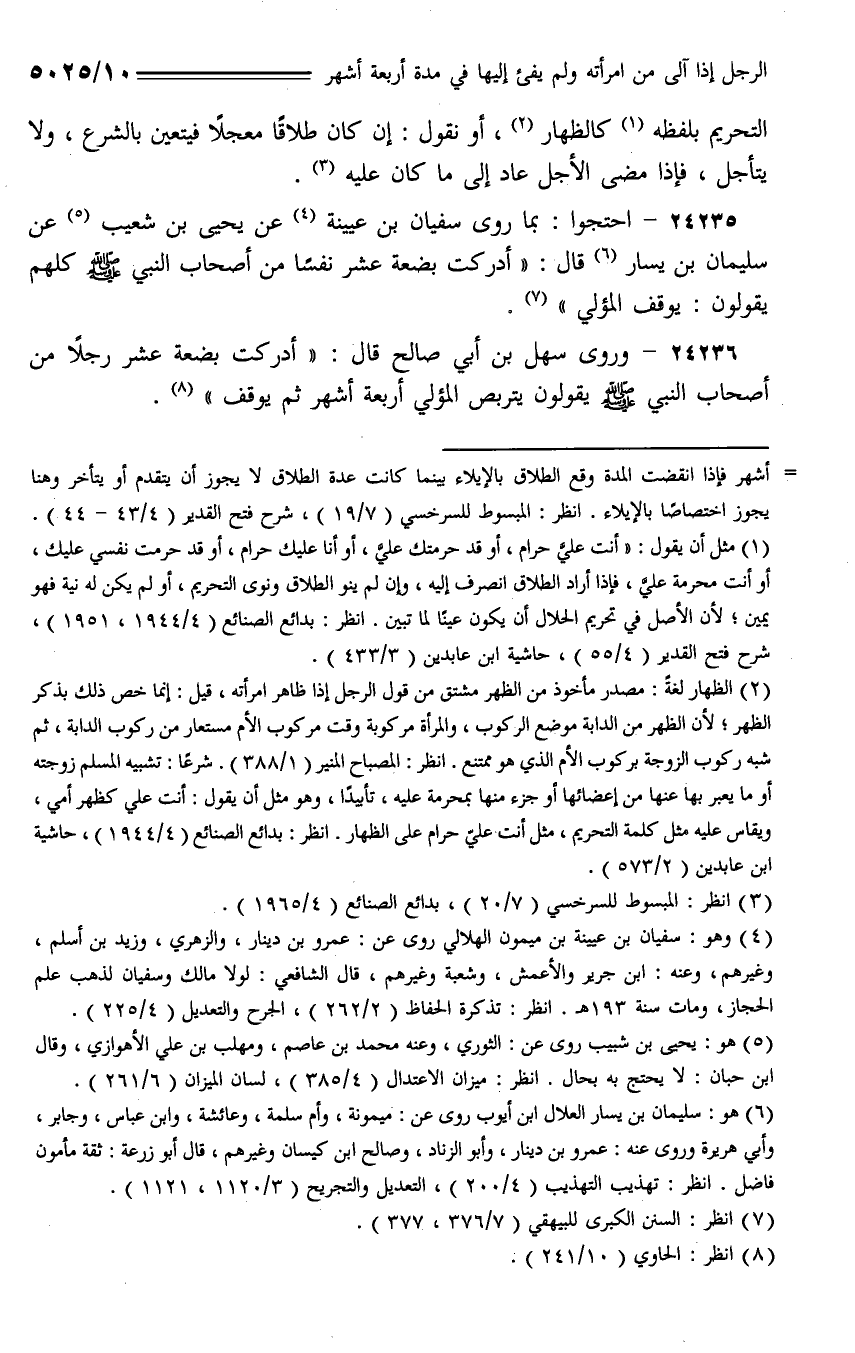 24236 - وروى سهل بن أبي صالح قال: (أدركت بضعة عشر رجلًا من أصحاب النبي - صلى الله عليه وسلم - يقولون يتربص المؤلي أربعة أشهر ثم يوقف).