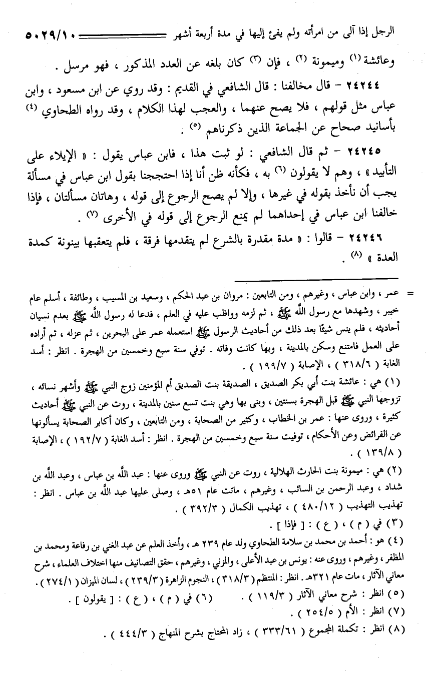 24244 - قال مخالفنا: قال الشافعي في القديم: وقد روي عن ابن مسعود، وابن عباس مثل قولهم، فلا يصح عنهما، والعجب لهذا الكلام، وقد رواه الطحاوي بأسانيد صحاح عن الجماعة الذين ذكرناهم.