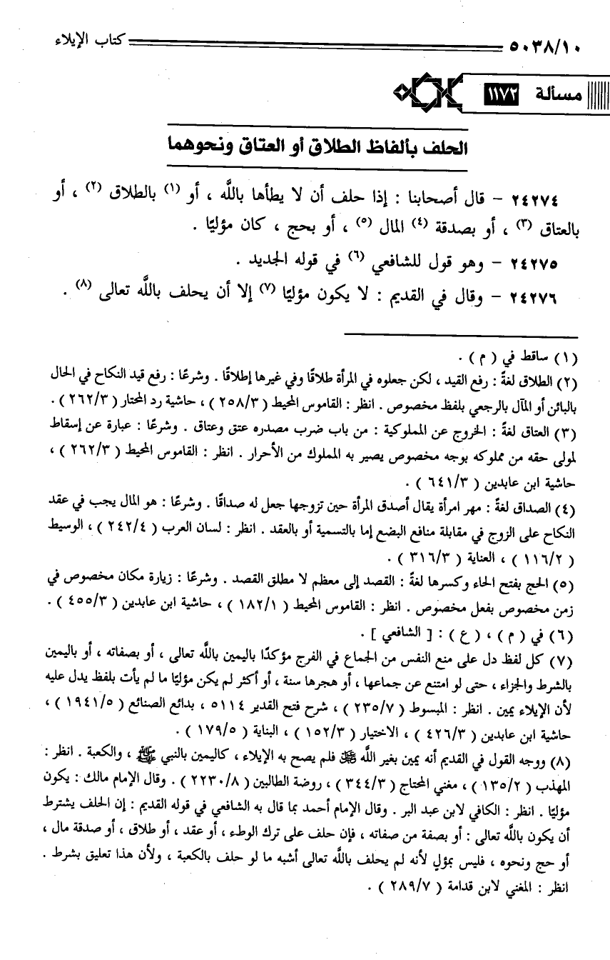 24274 - قال أصحابنا: إذا حلف أن لا يطأها بالله، أو بالطلاق، أو بالعتاق، أو بصدقة المال، أو بحج، كان مؤليًا.