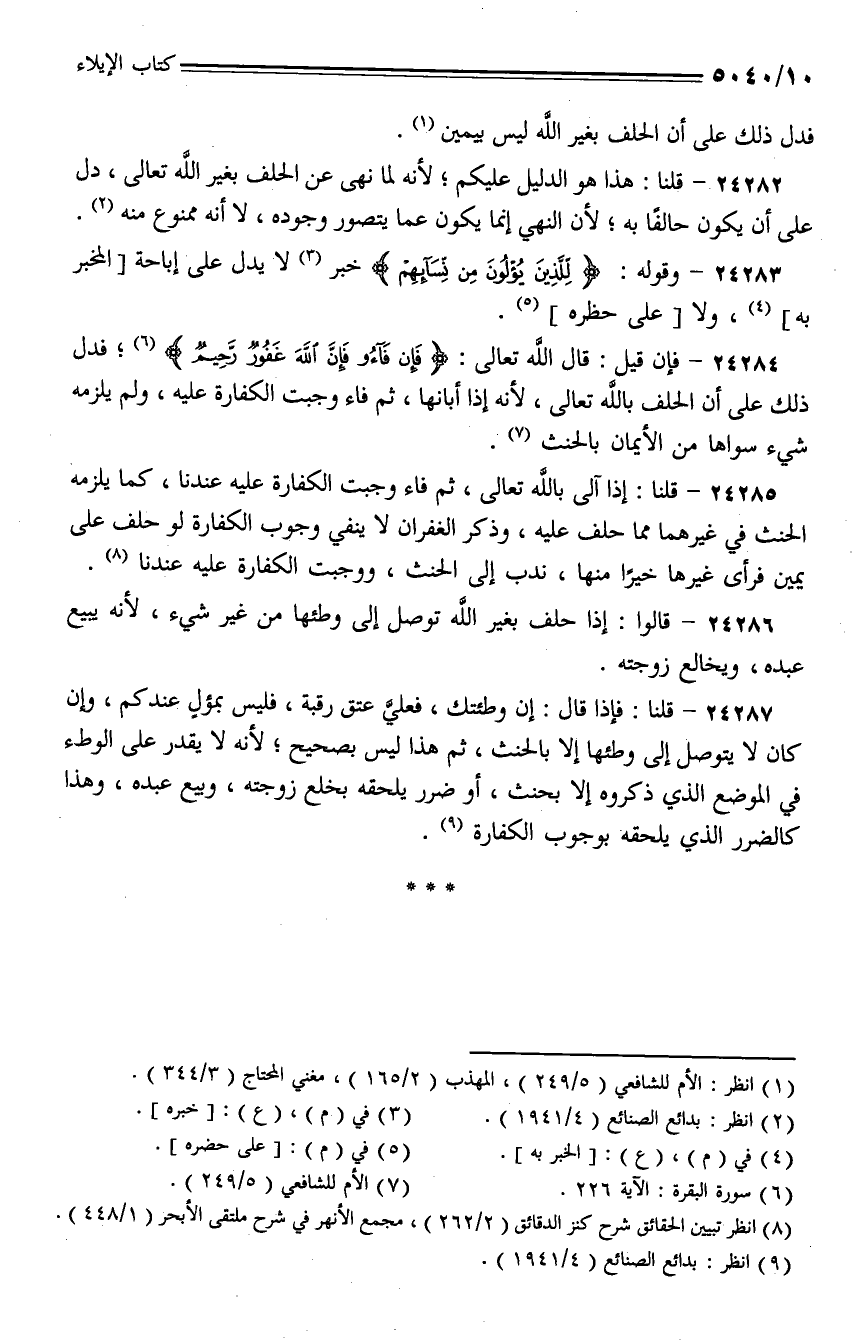 24284 - فإن قيل: قال الله تعالى: (فإن فاءو فإن الله غفور رحيم)؛ فدل ذلك على أن الحلف بالله تعالى، لأنه إذا أبانها، ثم فاء وجبت الكفارة عليه، ولم يلزمه شيء سواها من الأيمان بالحنث.