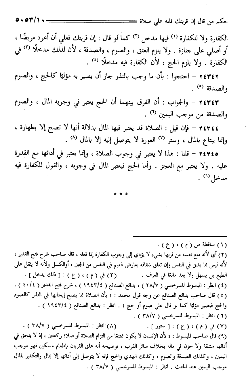 24345 - قلنا: هذا لا يعتبر في وجوب الصلاة، وإنما يعتبر في أدائها مع القدرة عليه. ولا يعتبر مع العجز. وأما الحج فيعتبر المال في وجوبه، والقول للكفارة فيه مدخل.