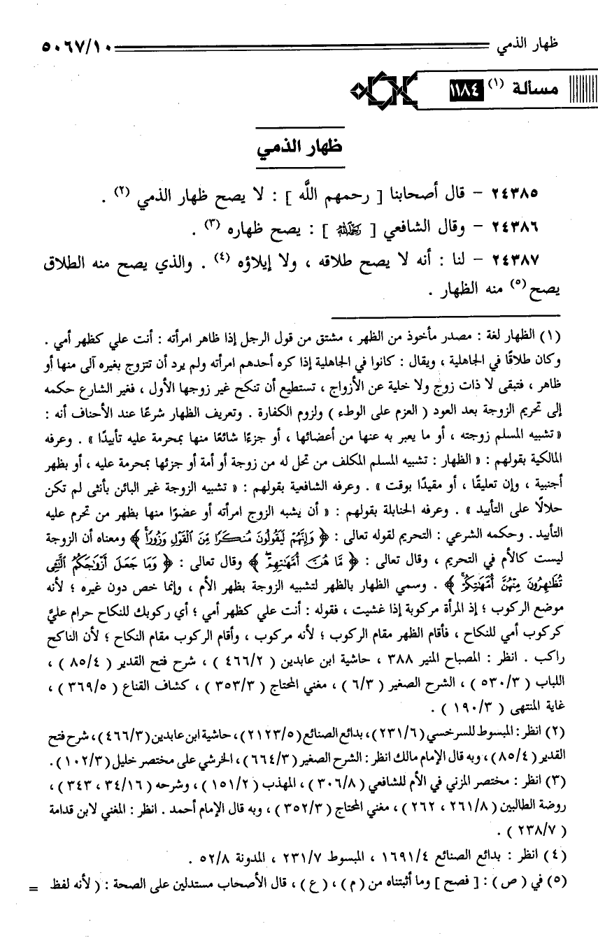 24385 - قال أصحابنا [رحمهم الله]: لا يصح ظهار الذمي.