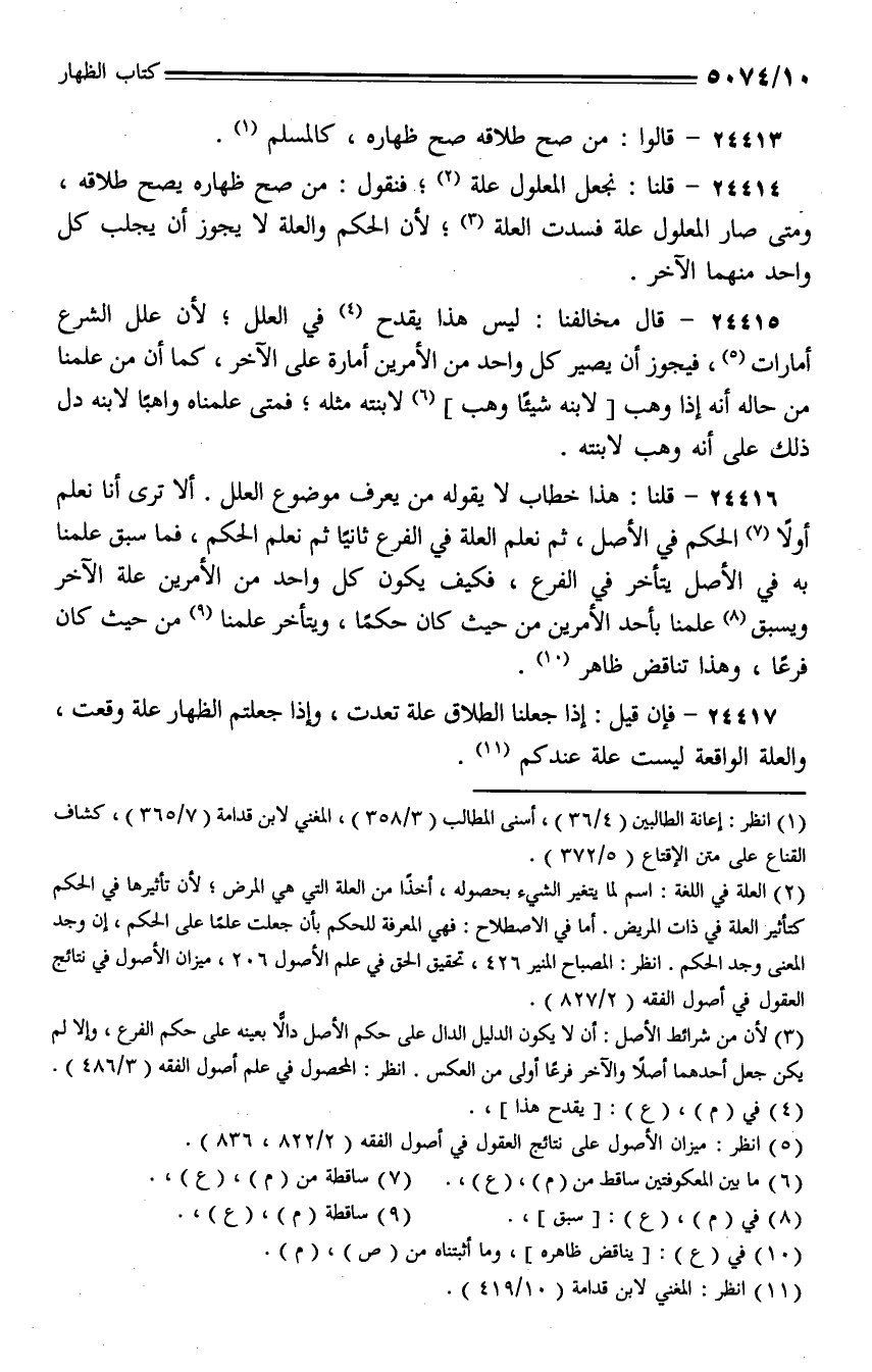 24416 - قلنا: هذا خطاب لا يقوله من يعرف موضوع العلل. ألا ترى أنا نعلم أولًا الحكم في الأصل، ثم نعلم العلة في الفرع ثانيًا ثم نعلم الحكم، فما سبق علمنا به في الأصل يتأخر في الفرع، فكيف يكون كل واحد من الأمرين علة الآخر ويسبق علمنا بأحد الأمرين من حيث كان حكمًا، ويتأخر علمنا من حيث كان فرعًا، وهذا تناقض ظاهر.