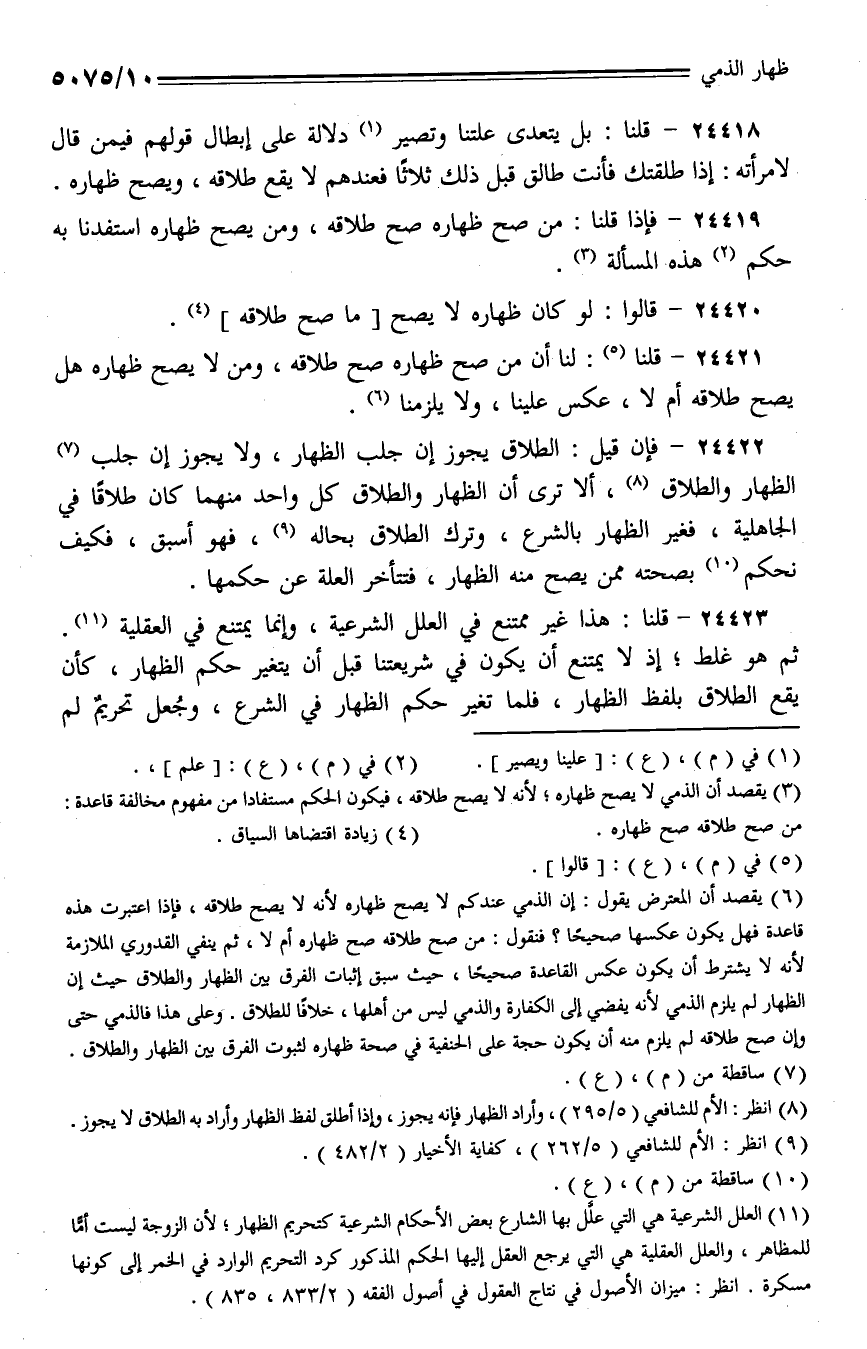 24421 - قلنا: لنا أن من صح ظهاره صح طلاقه، ومن لا يصح ظهاره هل يصح طلاقه أم لا، عكس علينا، ولا يلزمنا.