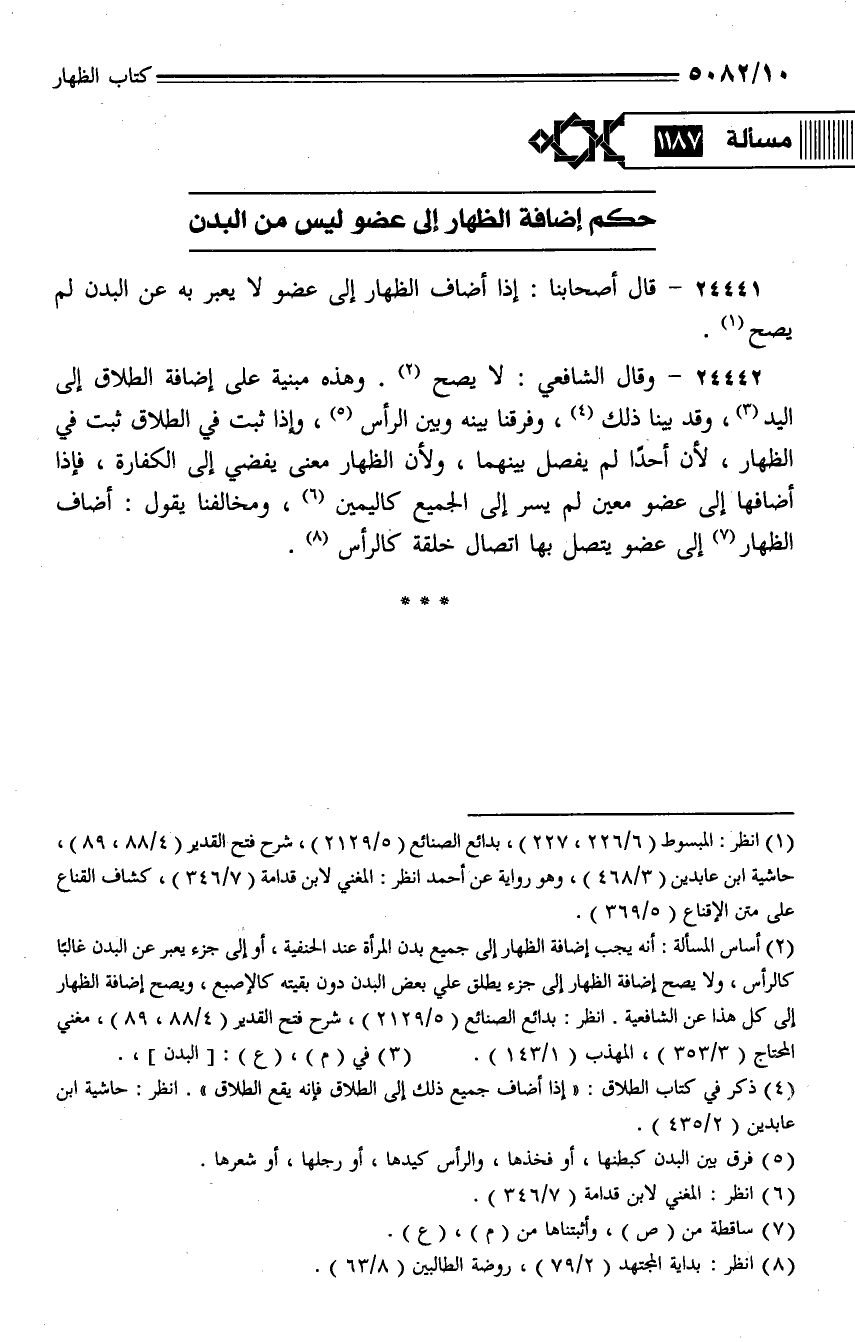 24441 - قال أصحابنا: إذا أضاف الظهار إلى عضو لا يعبر به عن البدن لم يصح.
