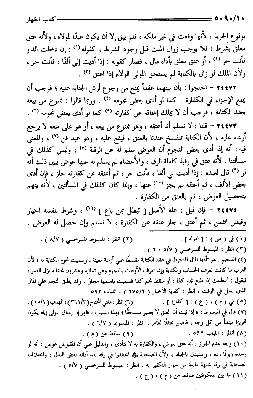 24472 - احتجوا: بأن بينهما عقدًا يمنع من رجوع أرش الجناية عليه؛ فوجب أن يمنع الإجزاء في الكفارة. كما لو أدى بعض نجومه. وربما قالوا: ممنوع من بيعه بعقد الكتابة، فوجب أن لا يملك إعتاقه من كفارته كما لو أدى بعض نجومه.