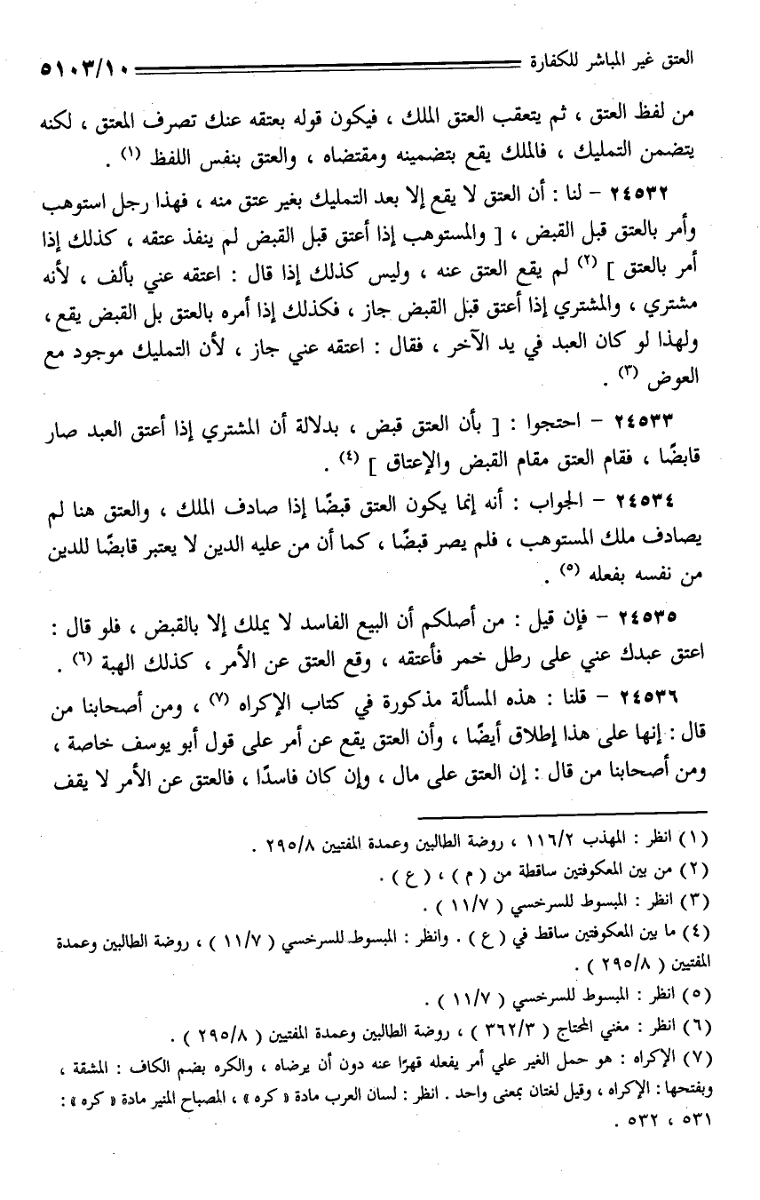 24533 - احتجوا: [أن العتق قبض، بدلالة أن المشتري إذا أعتق العبد صار قابضًا، فقام العتق مقام القبض والإعتاق].