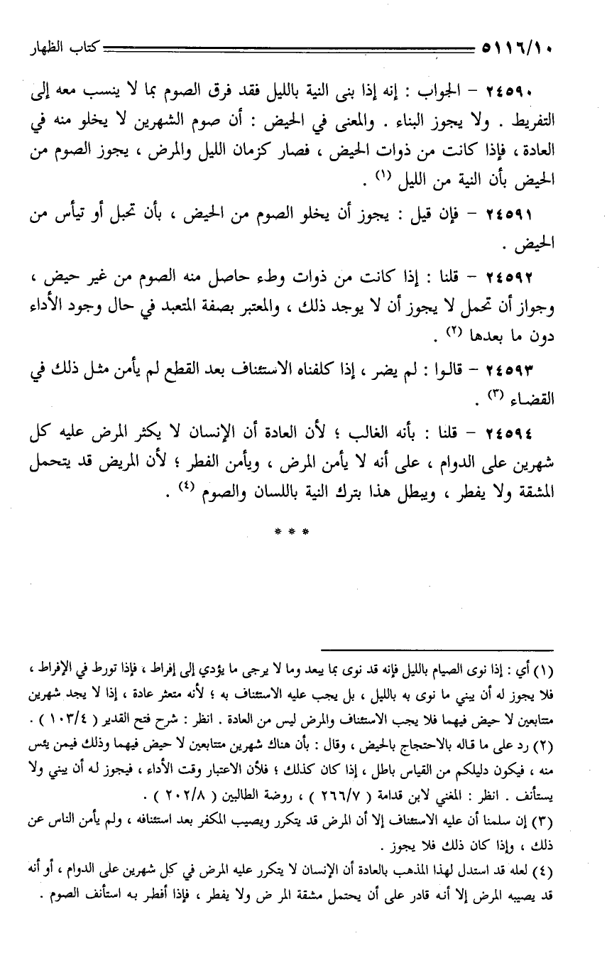 24594 - قلنا: بأنه الغالب؛ لأن العادة أن الإنسان لا يكثر المرض عليه كل شهرين على الدوام، على أنه لا يأمن المرض، ويأمن الفطر؛ لأن المريض قد يتحمل المشقة ولا يفطر، ويبطل هذا بترك النية باللسان والصوم.