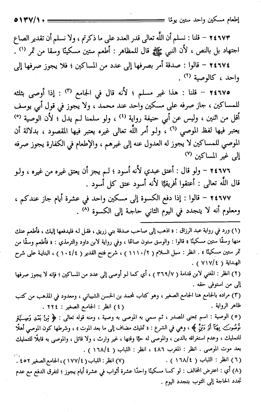 24674 - قالوا: صدقة أمر بصرفها إلى عدد من المساكين؛ فلا يجوز صرفها إلى واحد، كالوصية.