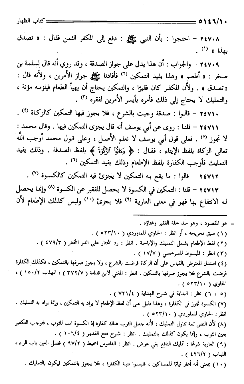 24708 - احتجوا: بأن النبي - صلى الله عليه وسلم -: دفع إلى المكفر الثمن فقال: (تصدق بهذا).