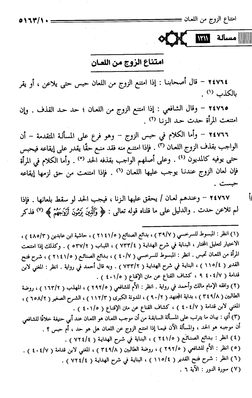 24764 - قال أصحابنا: إذا امتنع الزوج من اللعان حبس حتى يلاعن، أو يقر بالكذب.