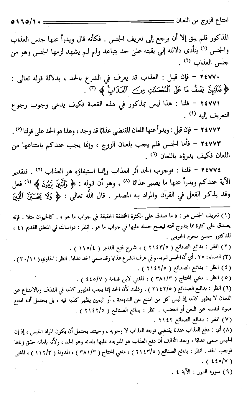 24774 - قلنا: فوجوب الحد أثر العذاب وإنما استيفاؤه هو العذاب. فتقدير الآية عندكم ويدرأ عنها ما يصير عذابًا، وهو أن قوله: (والذين يرمون) فعل وقد يذكر الفعل في القرآن والمراد به المصدر. قال الله تعالى: (ولا يحسبن الذين