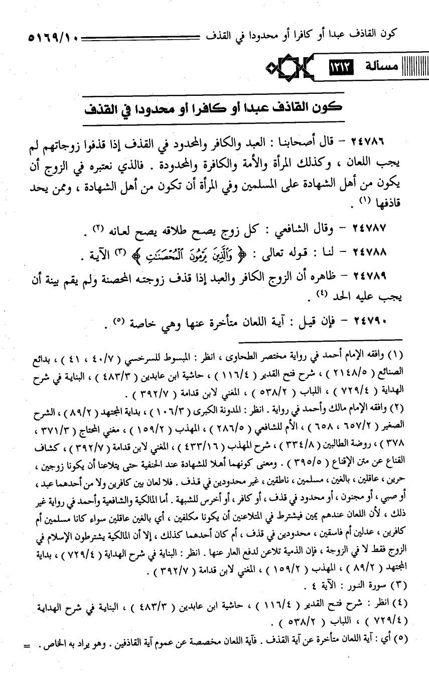 24789 - ظاهره أن الزوج الكافر والعبد إذا قذف زوجته المحصنة ولم يقم بينة أن يجب عليه الحد.