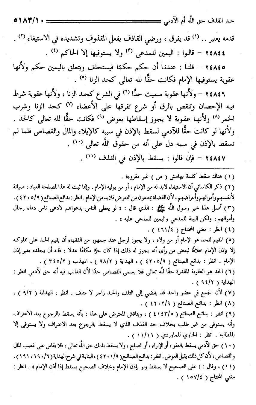 قدمه يعتبر .. قد يفرق، ورضي القاذف بفعل المقذوف وتشديده في الاستيفاء.