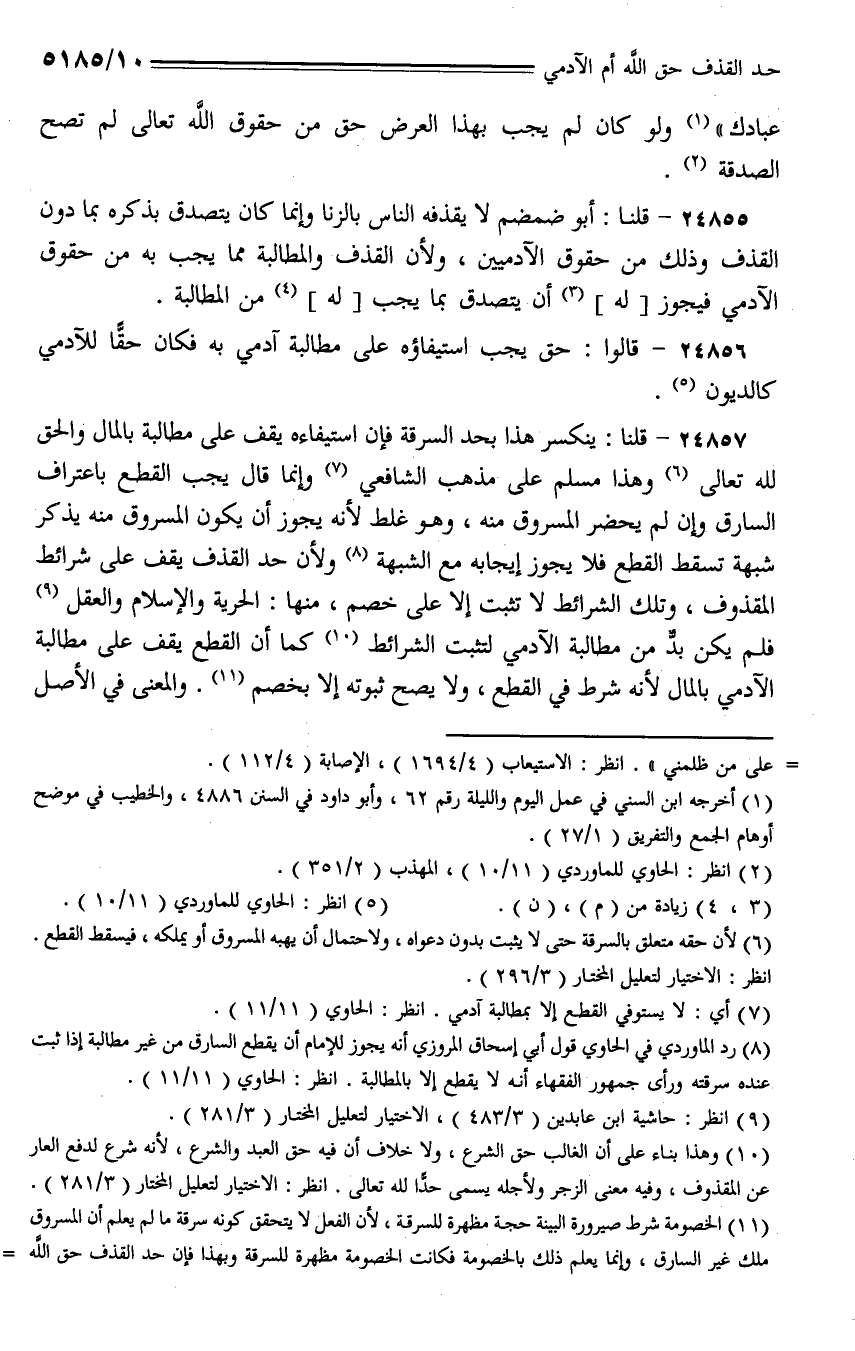 24856 - قالوا: حق يجب استيفاؤه على مطالبة آدمي به فكان حقًا للآدمي كالديون.