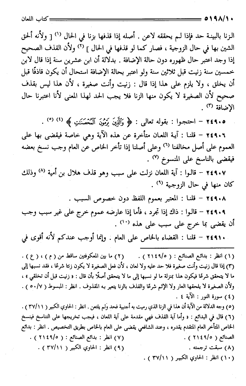 24906 - قلنا: آية اللعان متأخرة عن هذه الآية وهي خاصة فيقضى بها على العموم على أصل مخالفنا وعلى أصلنا إذا تأخر الخاص عن العام وجب نسخ بعضه فيقضى بالناسخ على المنسوخ.