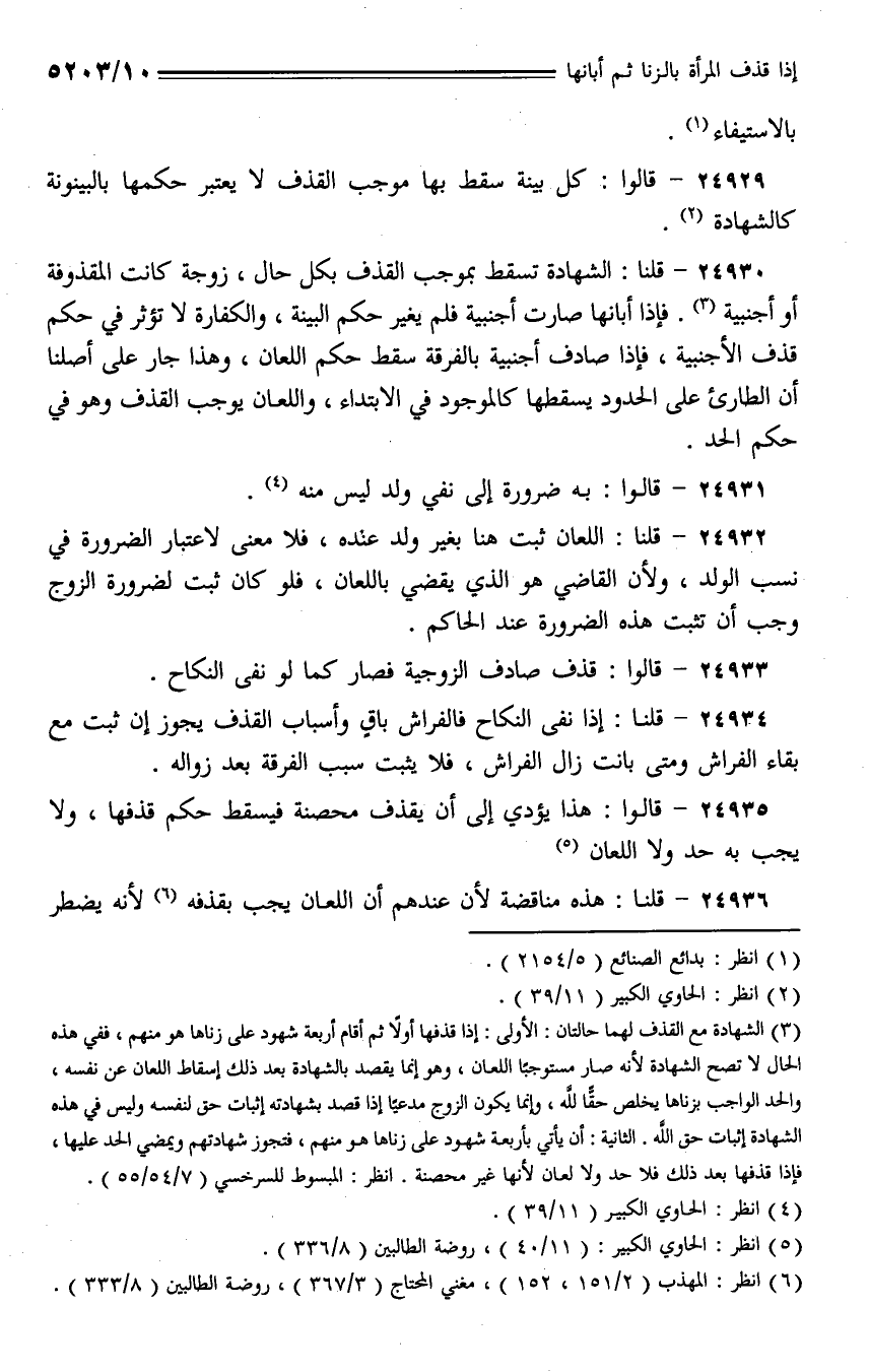 24929 - قالوا: كل بينة سقط بها موجب القذف لا يعتبر حكمها بالبينونة كالشهادة.