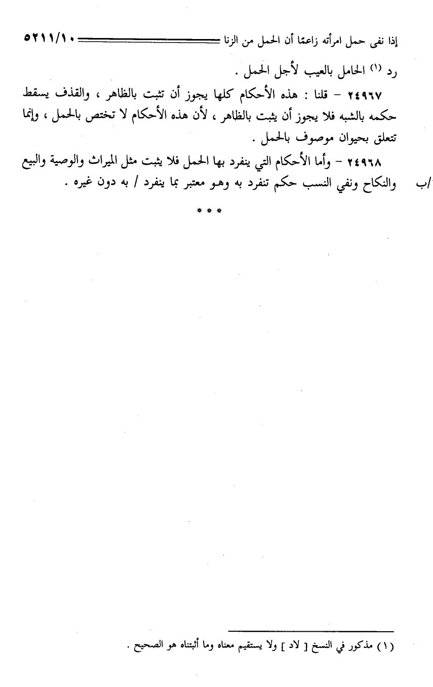 24968 - وأما الأحكام التي ينفرد بها الحمل فلا يثبت مثل الميراث والوصية والبيع والنكاح ونفي النسب حكم تنفرد به وهو معتبر بما ينفرد/ به دون غيره.