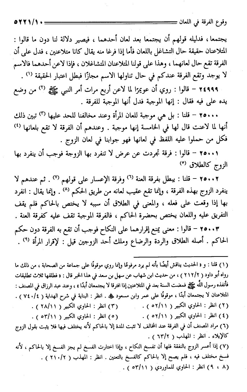 25000 - قلنا: بل هي موجبة للعان المرأة وعند مخالفنا للحد عليها تبين ذلك أنها لما لاعنت قال لها في الخامسة إنها موجبة. وعندهم أن الفرقة لا تقع بلعانها فكل من حملوا عليه اللفظ في لعانها فهو جوابنا في لعان الزوج.
