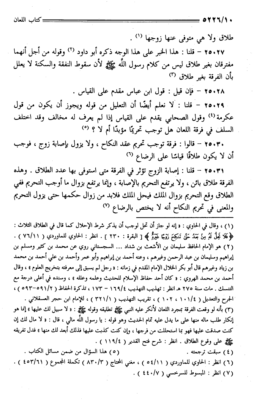 25029 - قلنا: لا نعلم أيضًا أن التعليل من قوله ويجوز أن يكون من قول عكرمة وقول الصحابي يقدم على القياس إذا لم يعرف له مخالف وقد اختلف السلف في فرقة اللعان هل توجب تحريمًا مؤبدًا أم لا؟