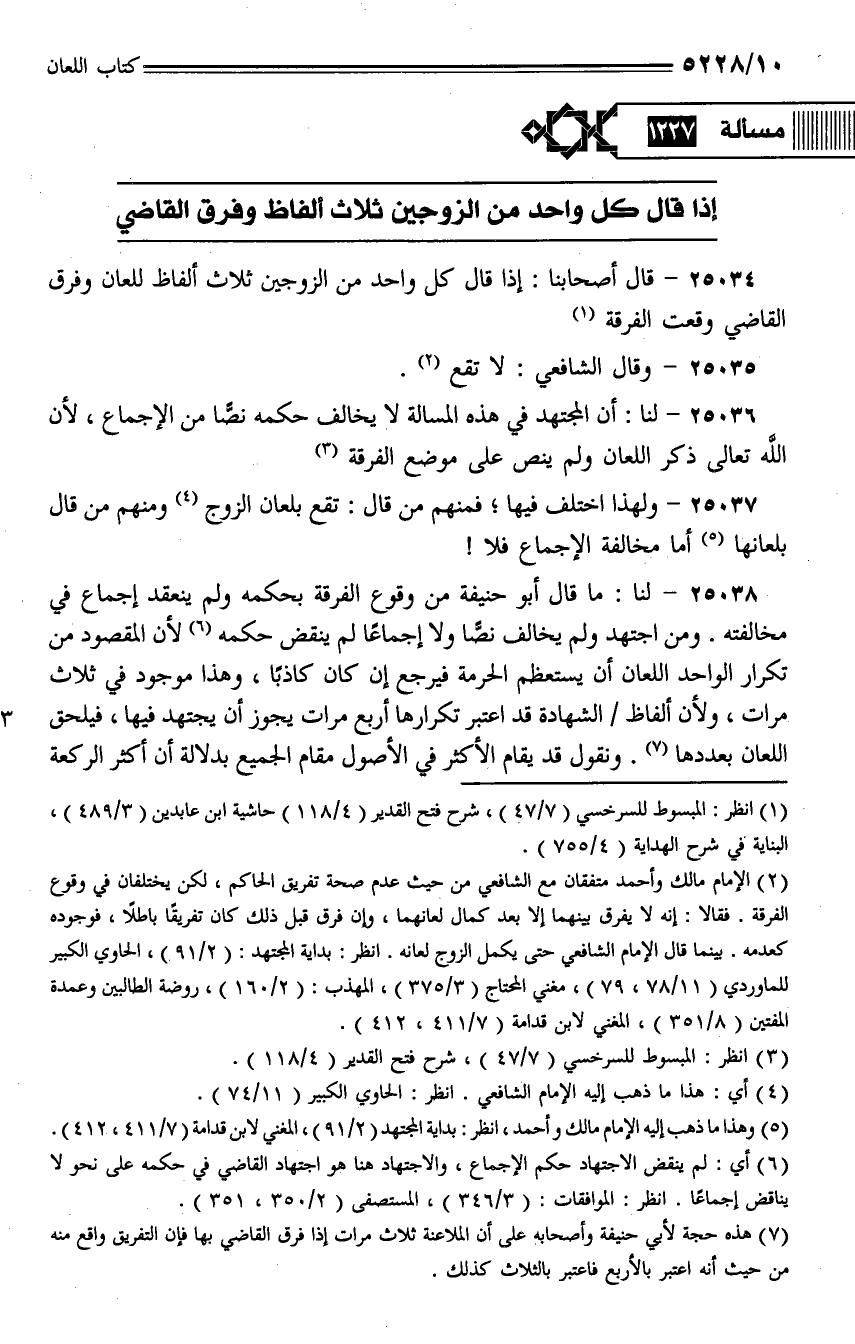 25036 - لنا: أن المجتهد في هذه المسألة لا يخالف حكمه نصًا من الإجماع، لأن الله تعالى ذكر اللعان ولم ينص على موضع الفرقة.