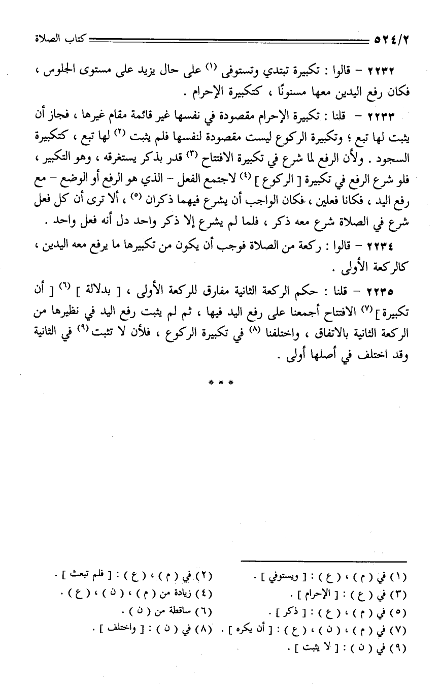 2234 - قالوا: ركعة من الصلاة فوجب أن يكون من تكبيرها ما يرفع معه اليدين، كالركعة الأولى.
